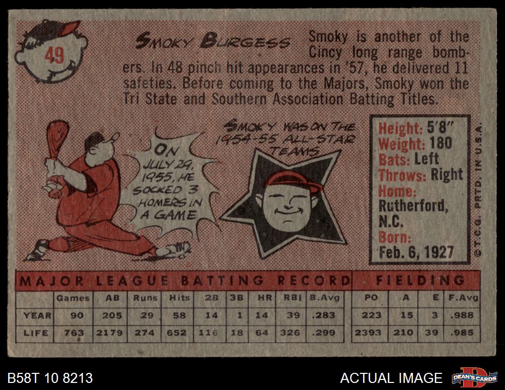 1958 Topps #49 Smoky Burgess 4 - VG/EX