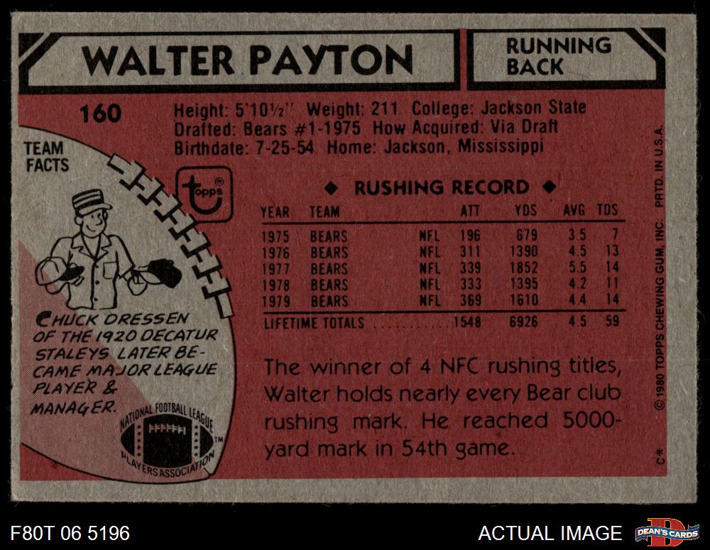 1980 Topps #160 Walter Payton 3 - VG