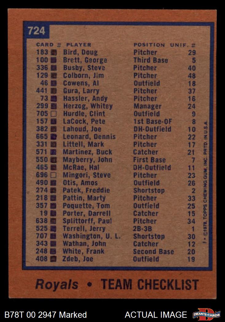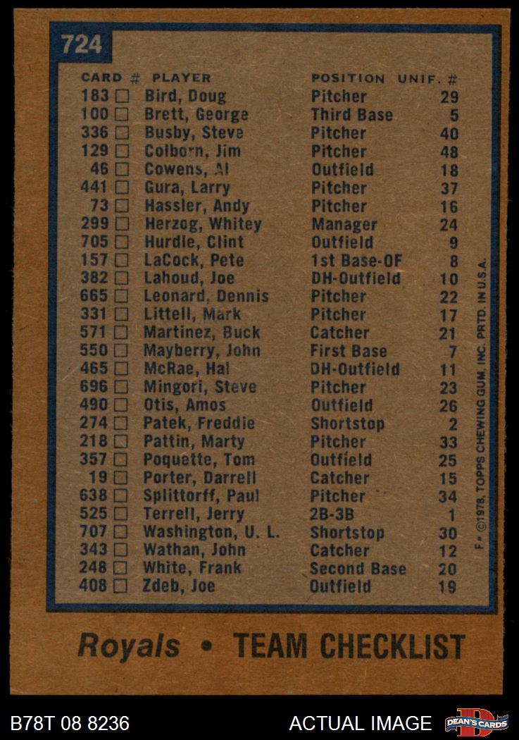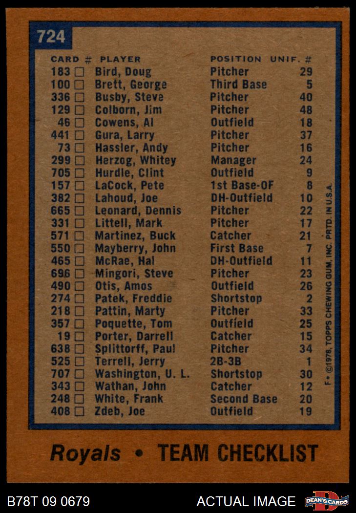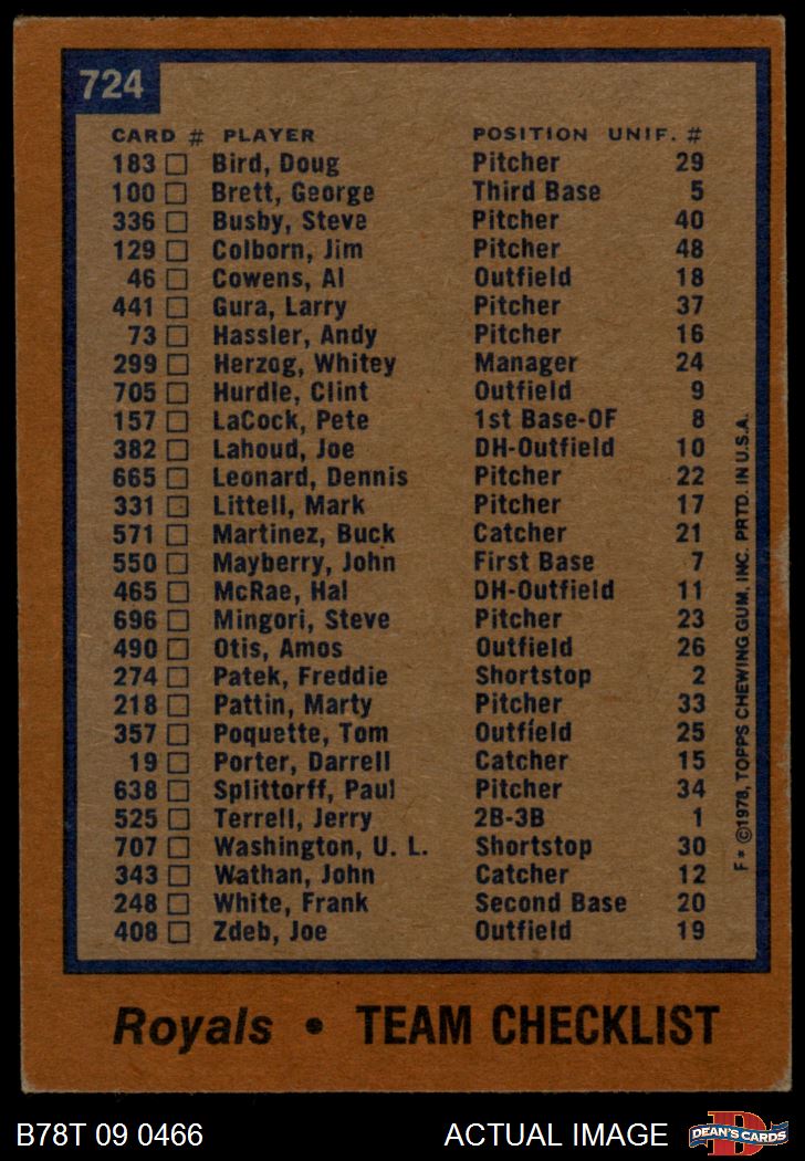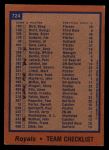 1978 Topps #724 Royals Team Checklist