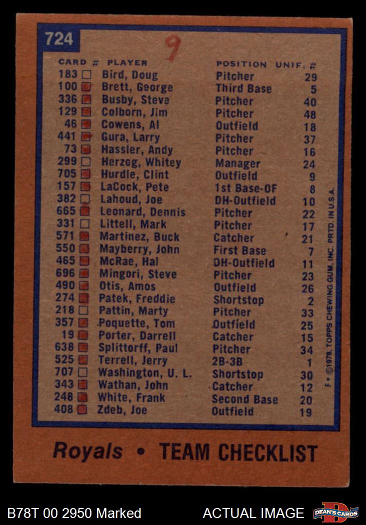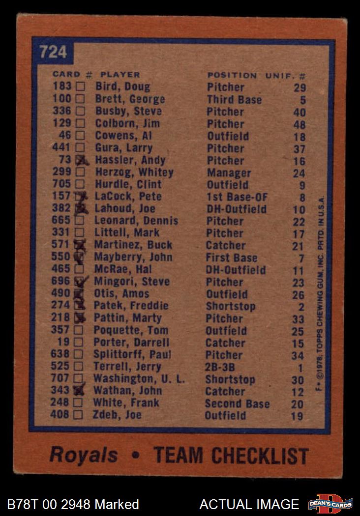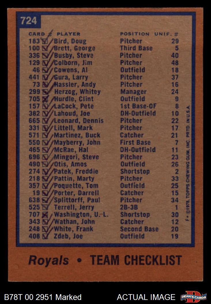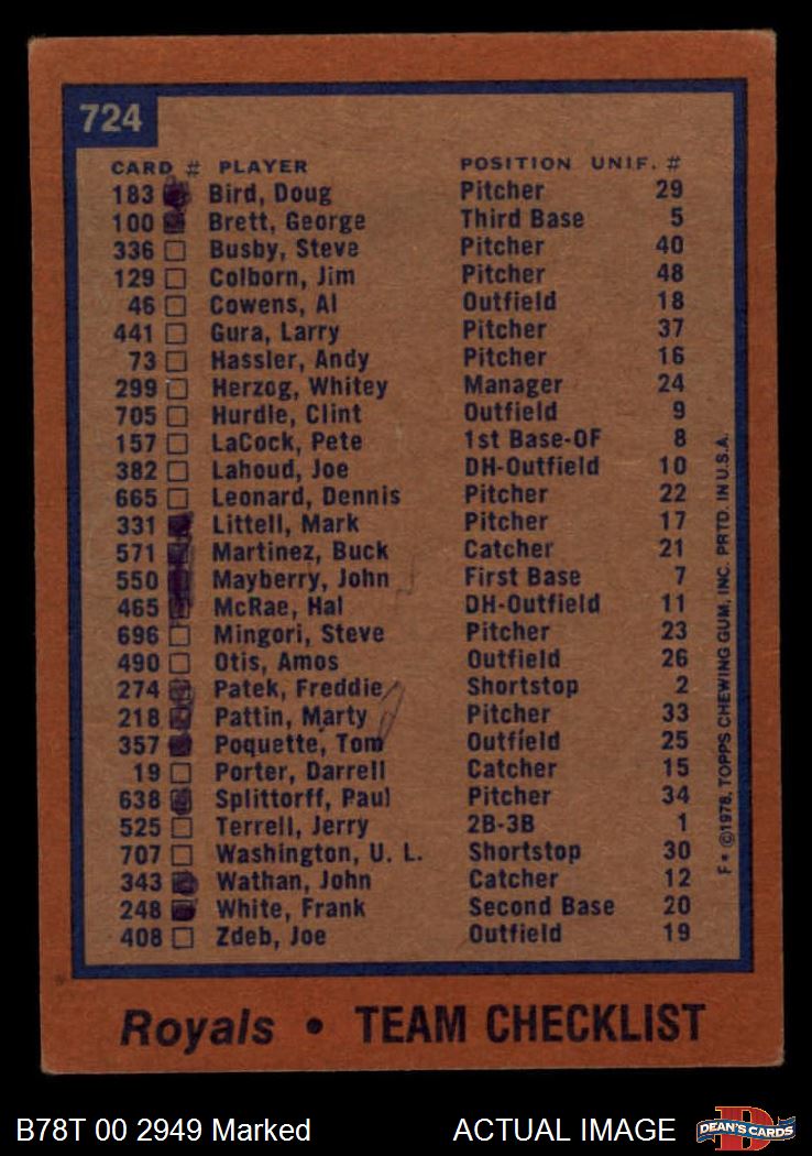 1978 Topps #724 Royals Team Checklist