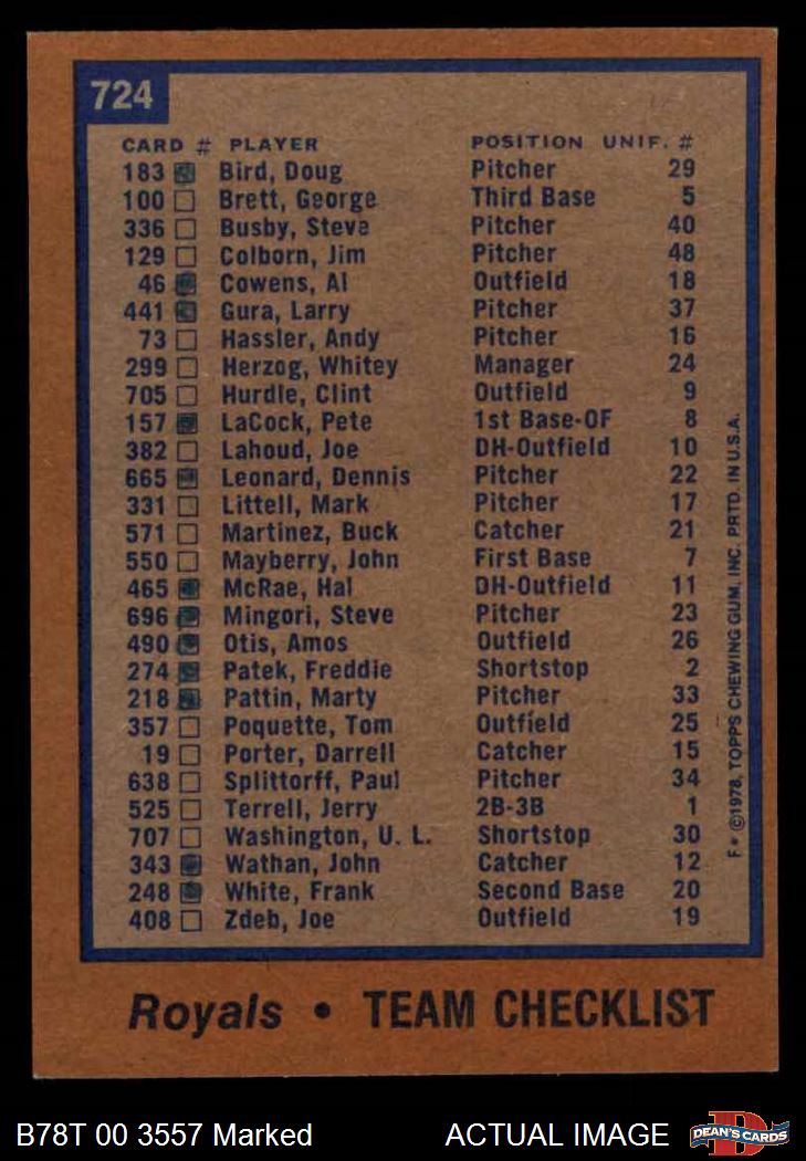 1978 Topps Royals (877 available)