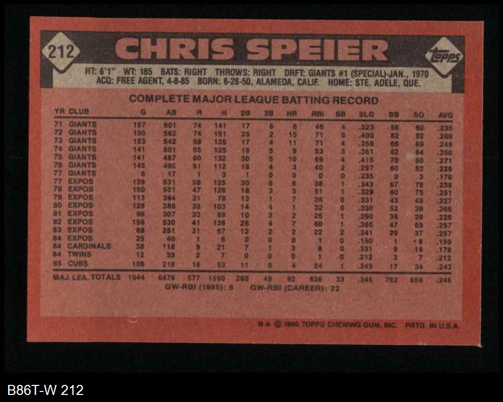 1986 Topps #212 Chris Speier