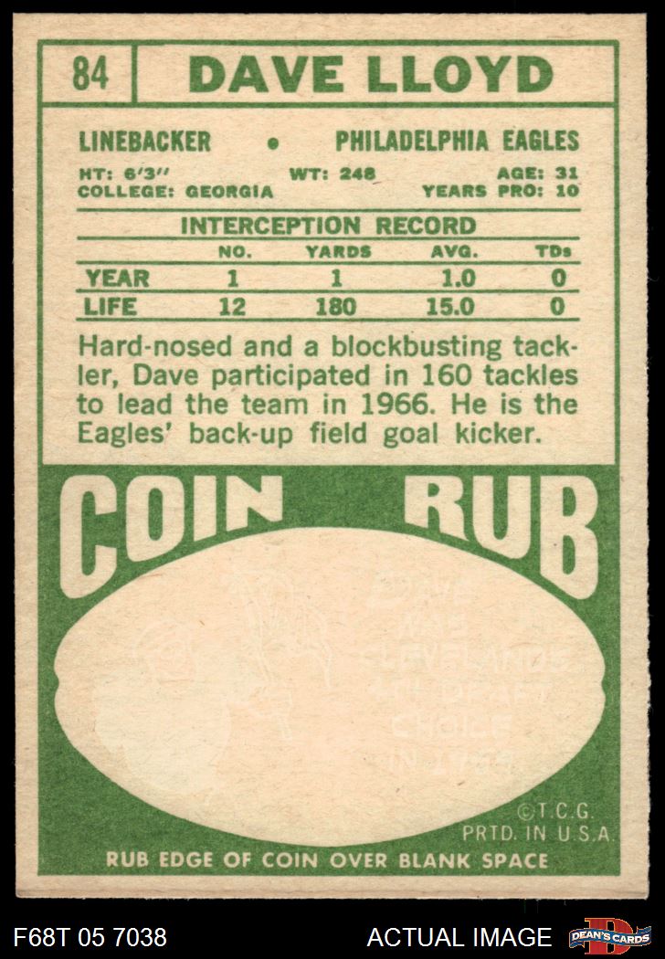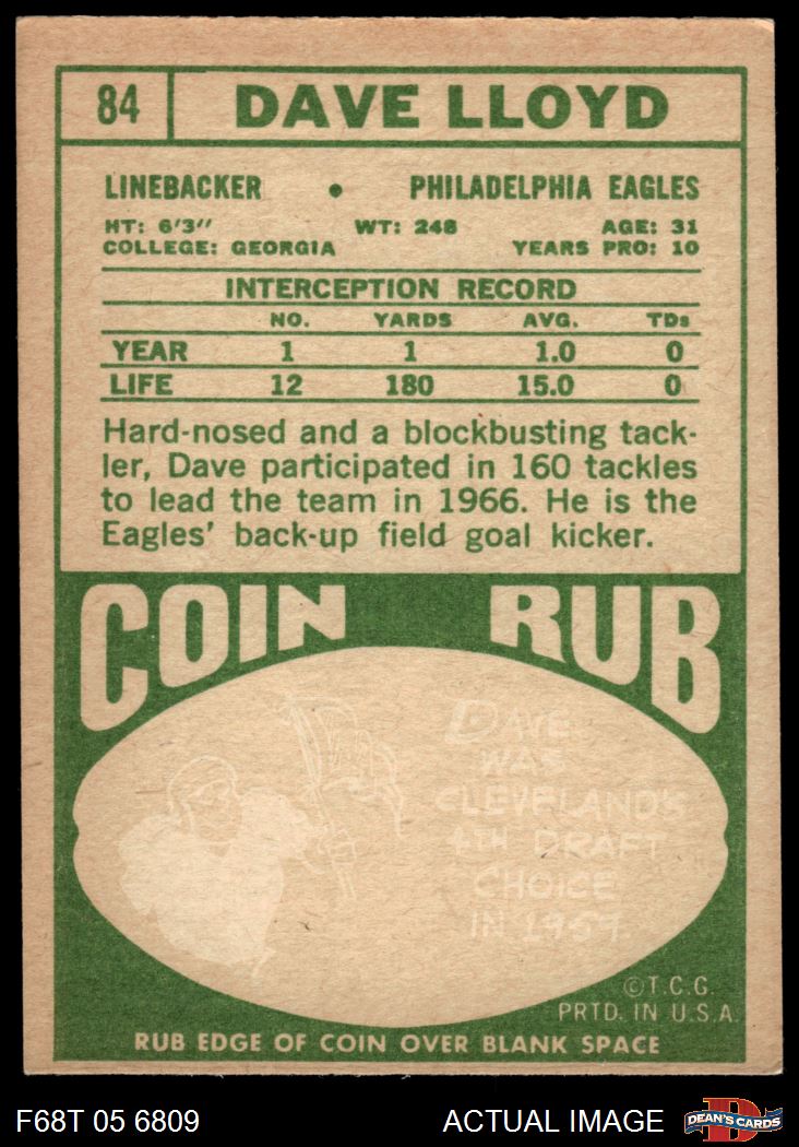1968 Topps Football Cards (2,552 available)1968 Topps Eagles (131 available)