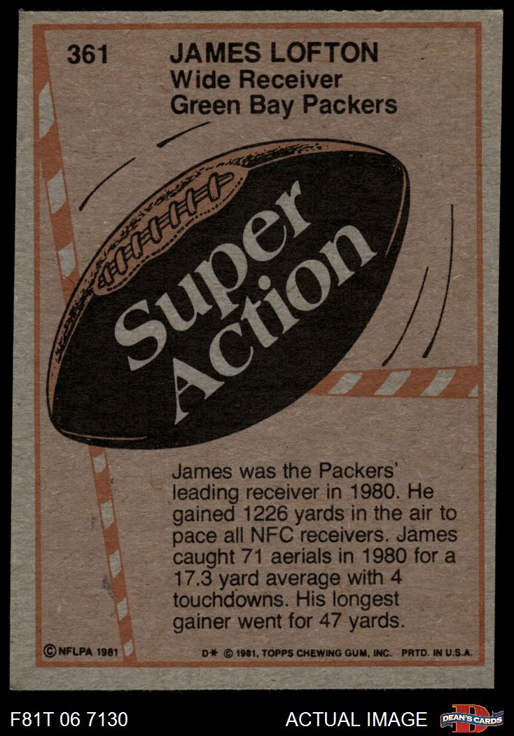 1981 Topps #361 - James Lofton Super Action 5 - EX