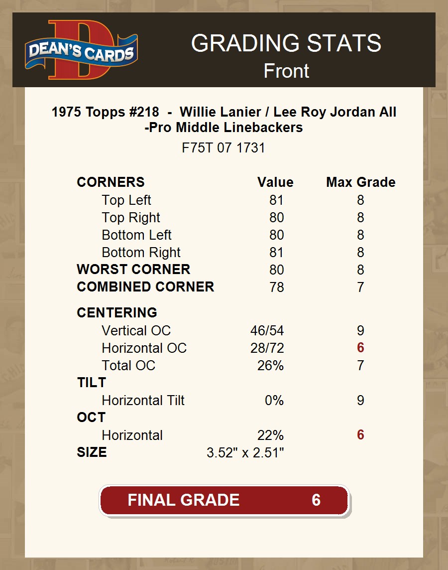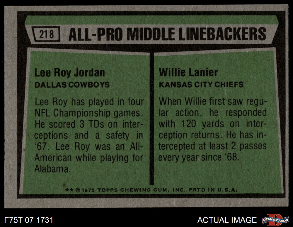 1975 Topps #218 - Willie Lanier / Lee Roy Jordan All-Pro Middle Linebackers 6 - EX/MT