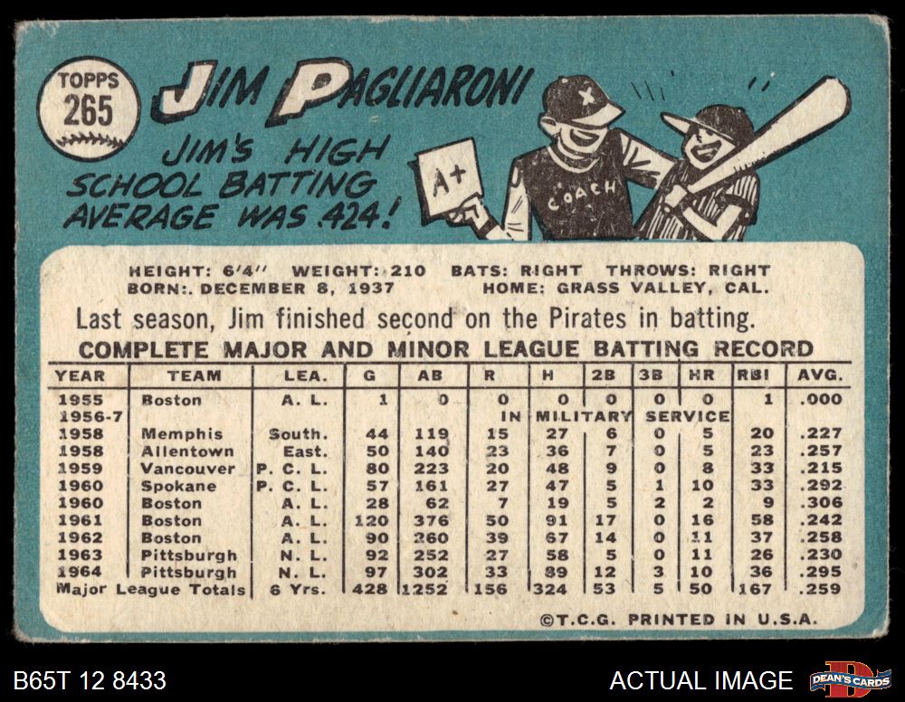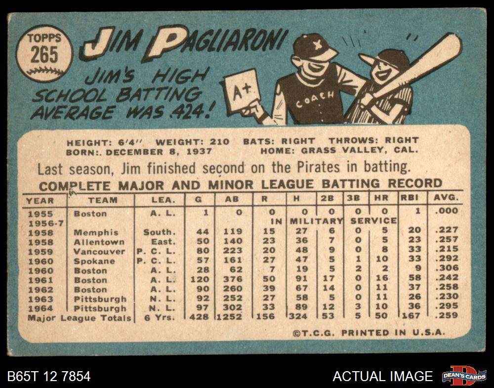 1965 Topps #265 Jim Pagliaroni 2 - GOOD