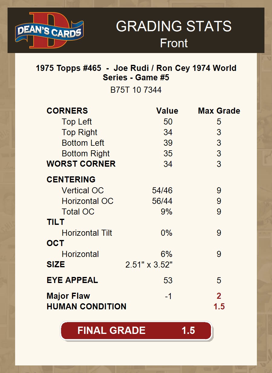 1975 Topps #465 - Joe Rudi / Ron Cey 1974 World Series - Game #5 1.5 - FAIR
