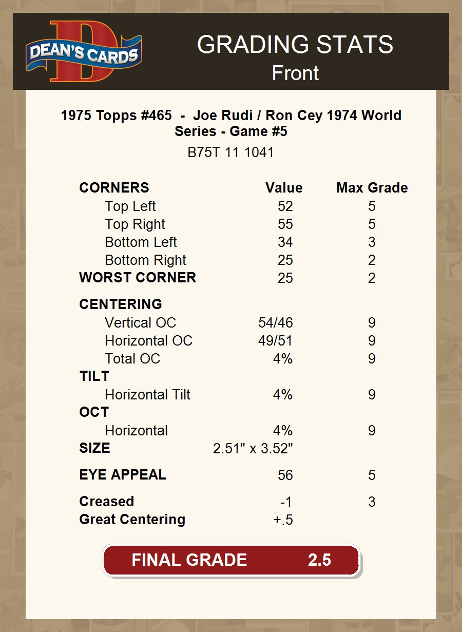 1975 Topps #465 - Joe Rudi / Ron Cey 1974 World Series - Game #5 2.5 - GD+