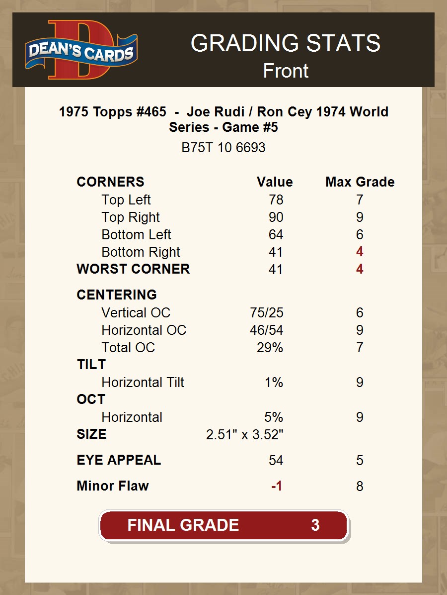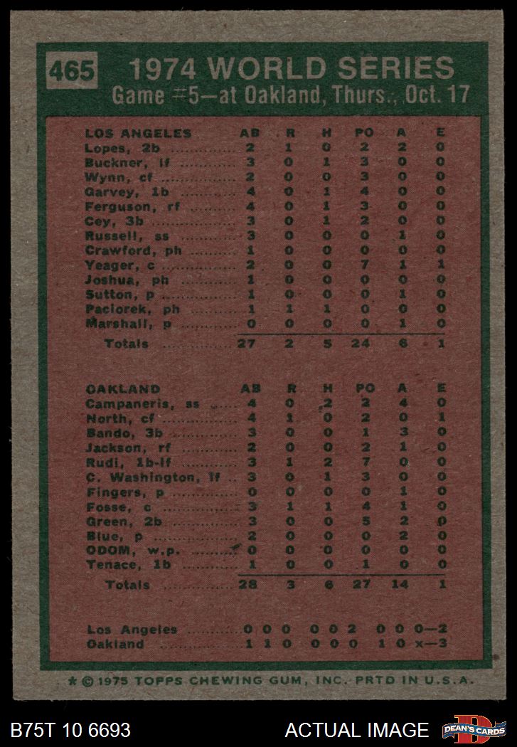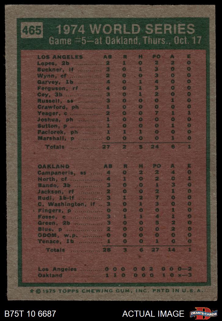 1975 Topps #465 - Joe Rudi / Ron Cey 1974 World Series - Game #5 3 - VG