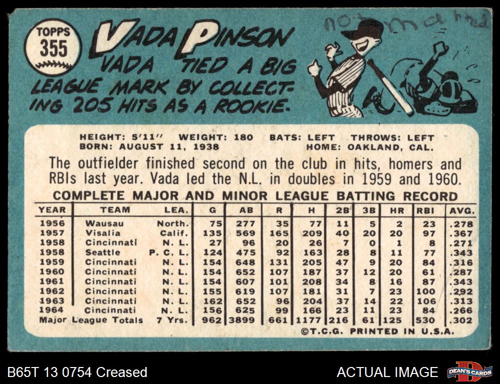 1965 Topps #355 Vada Pinson Front Thumbnail