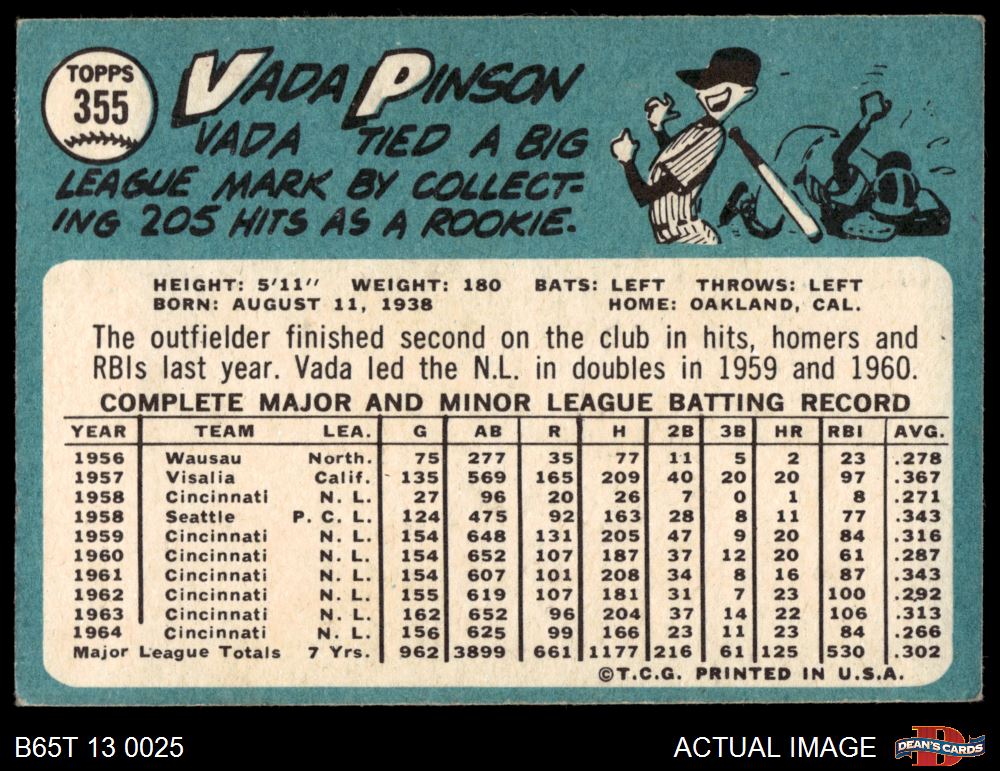 1965 Topps #355 Vada Pinson Front Thumbnail