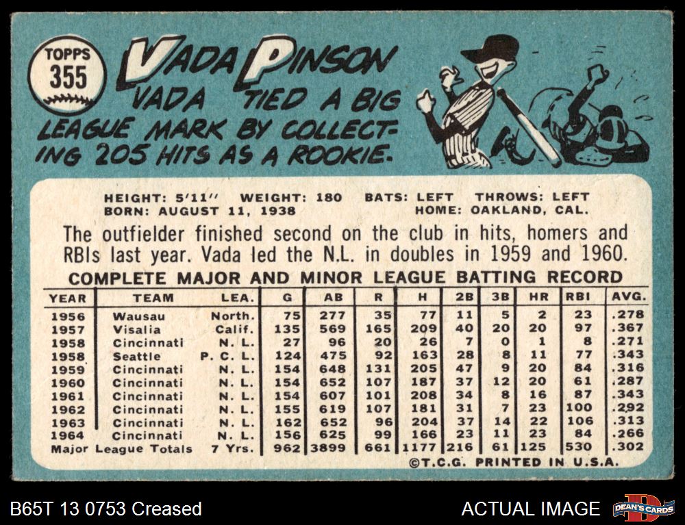 1965 Topps #355 Vada Pinson 3 - VG