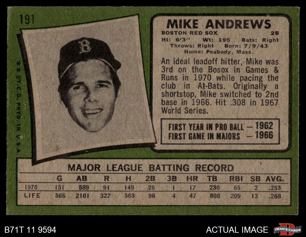 1971 Topps #191 Mike Andrews 4 - VG/EX