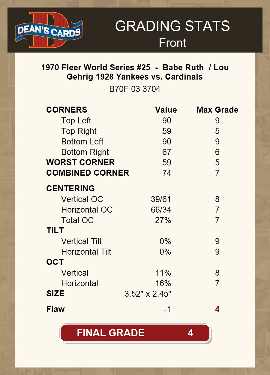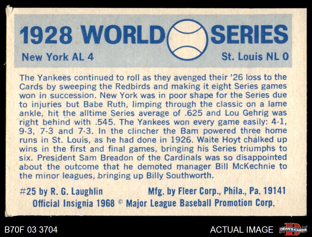 1970 Fleer World Series #25 - Babe Ruth / Lou Gehrig 1928 Yankees vs. Cardinals 4 - VG/EX