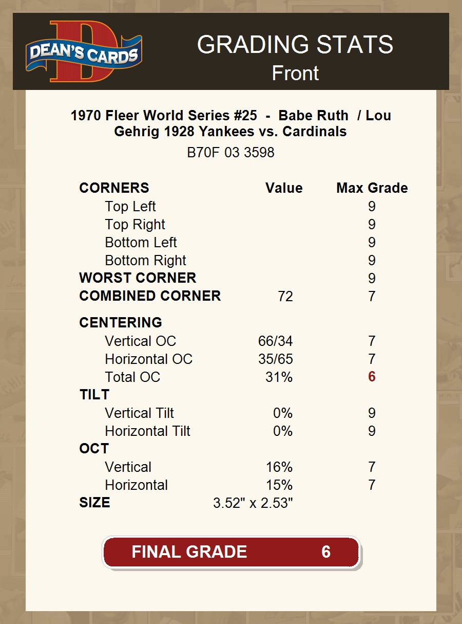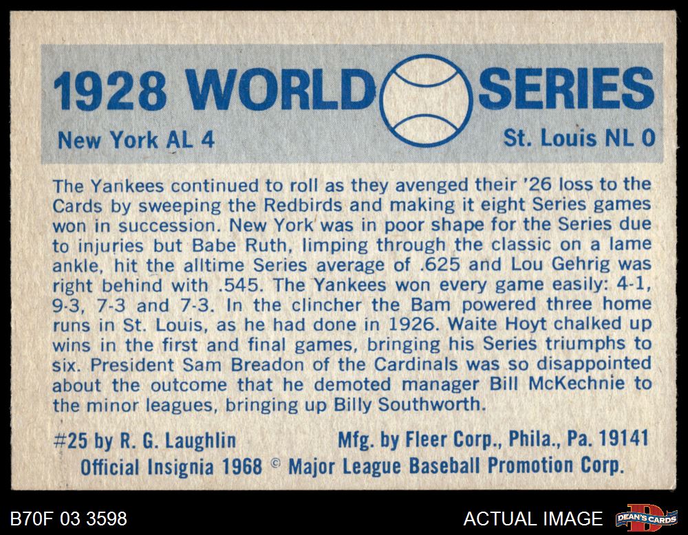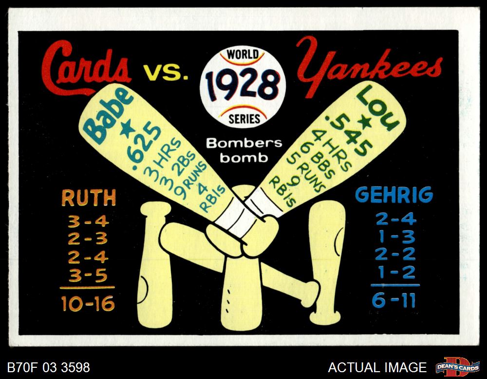 1970 Fleer World Series #25 - Babe Ruth / Lou Gehrig 1928 Yankees vs. Cardinals 6 - EX/MT