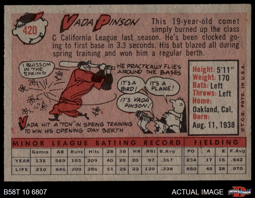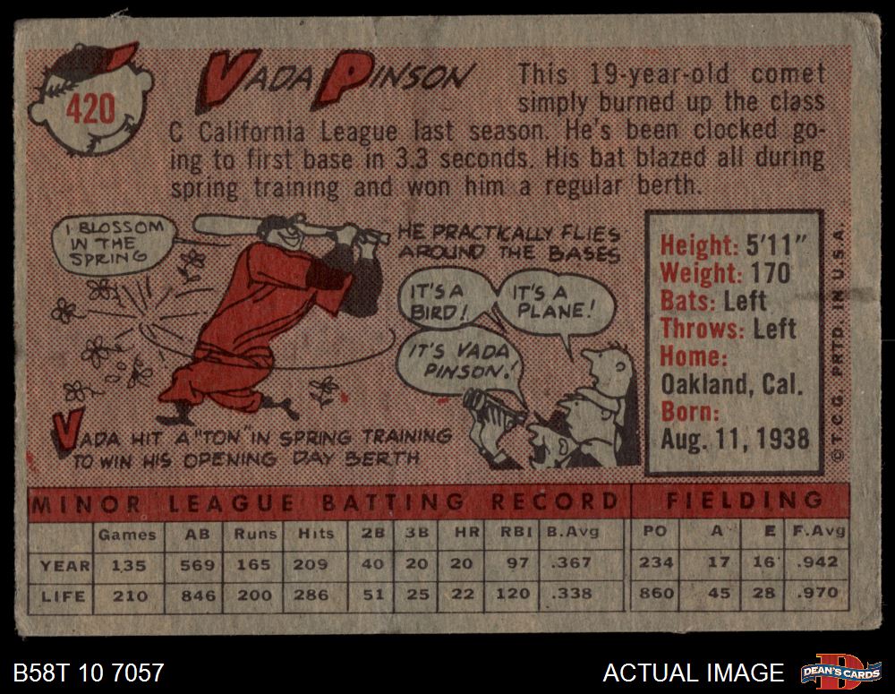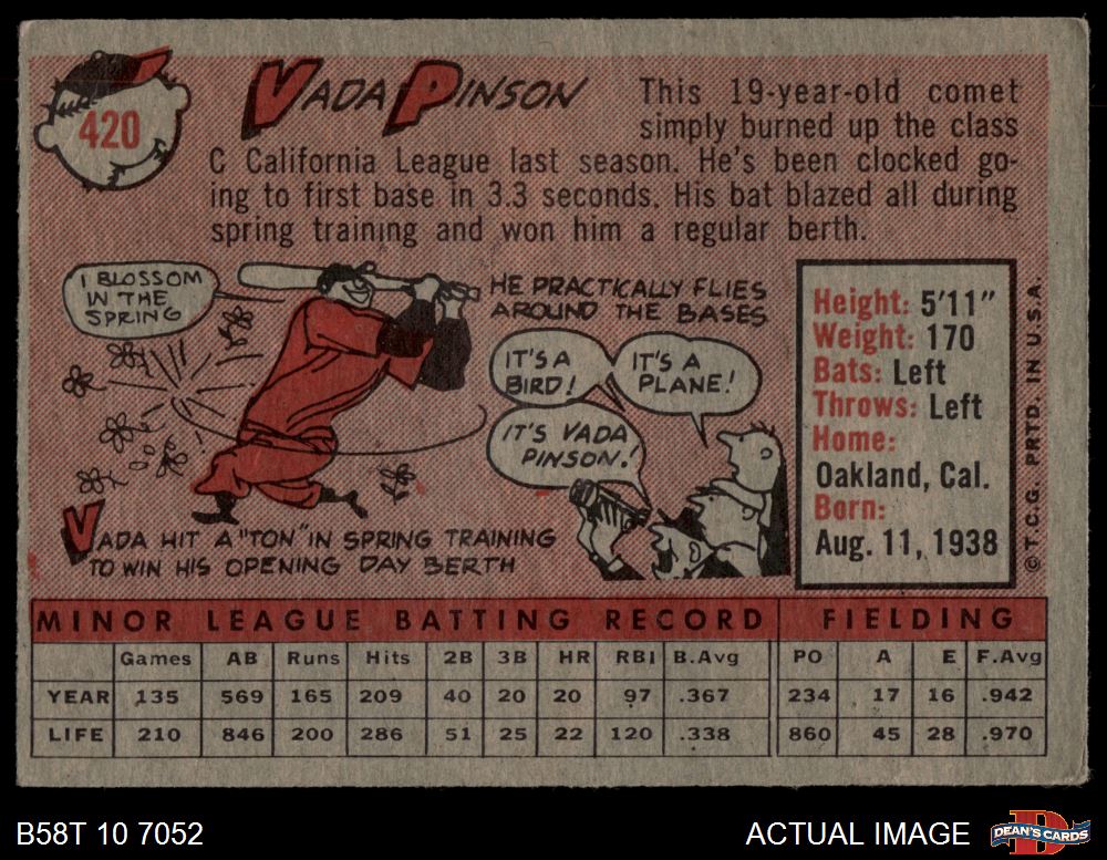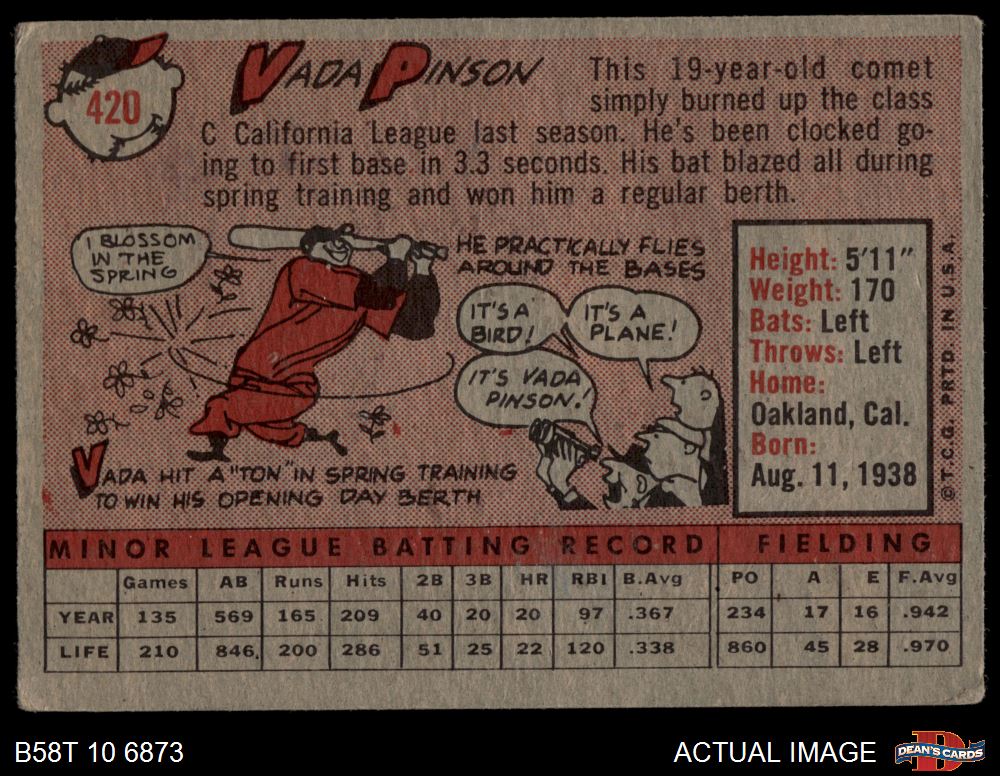 1958 Topps #420 Vada Pinson 3 - VG