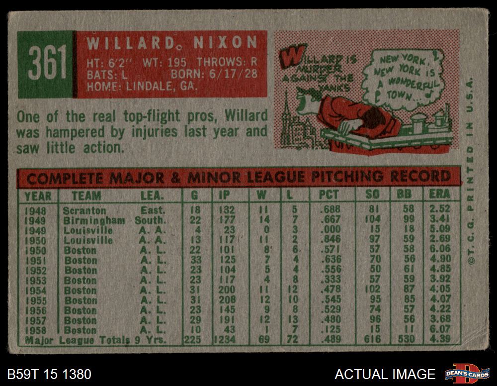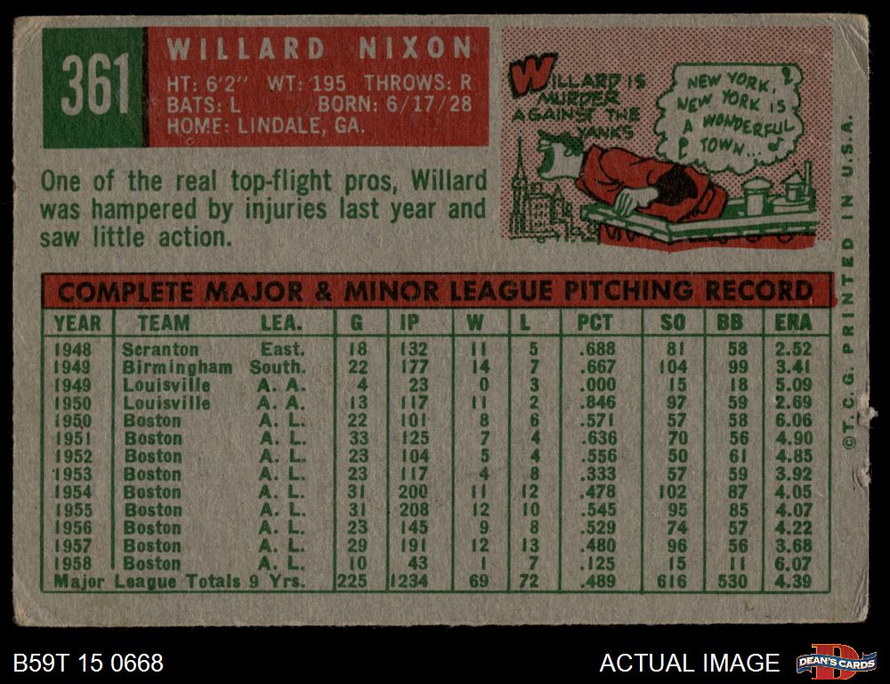 1959 Topps #361 Willard Nixon 2 - GOOD