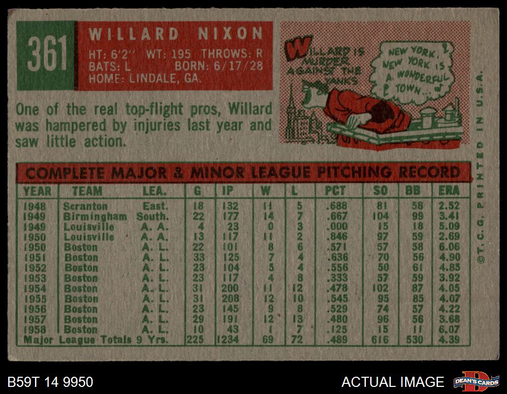 1959 Topps #361 Willard Nixon 3.5 - VG+