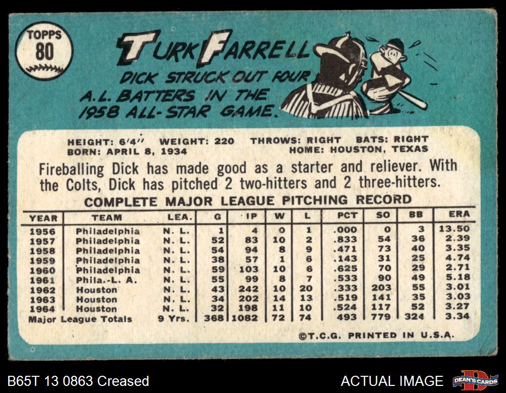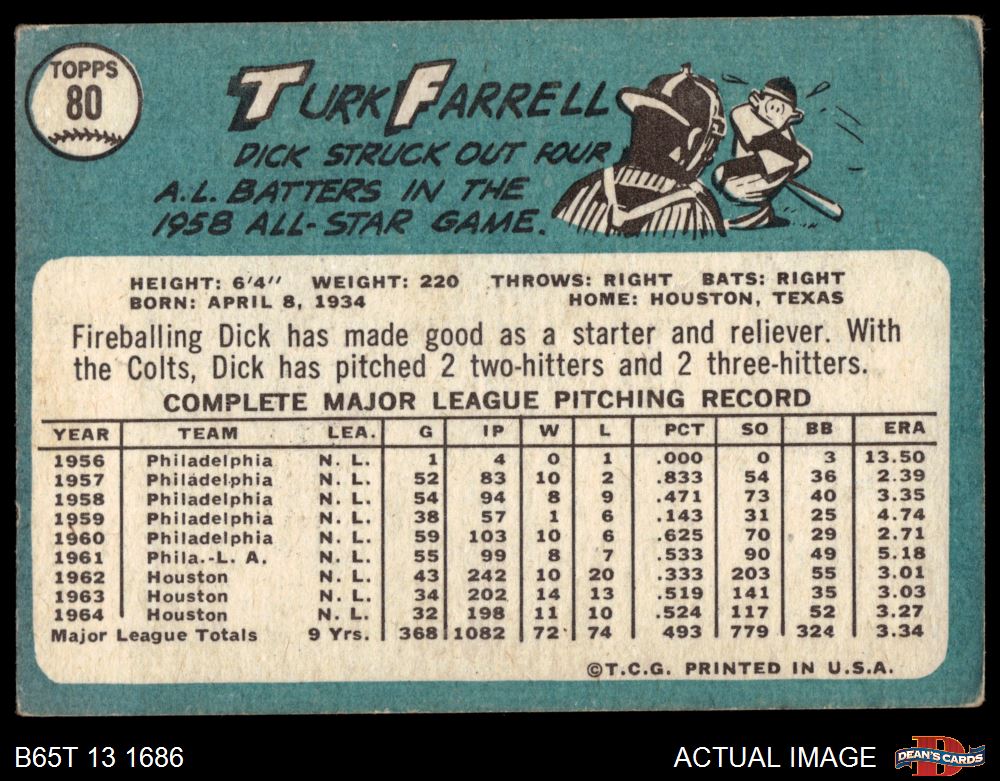 1965 Topps #80 Turk Farrell