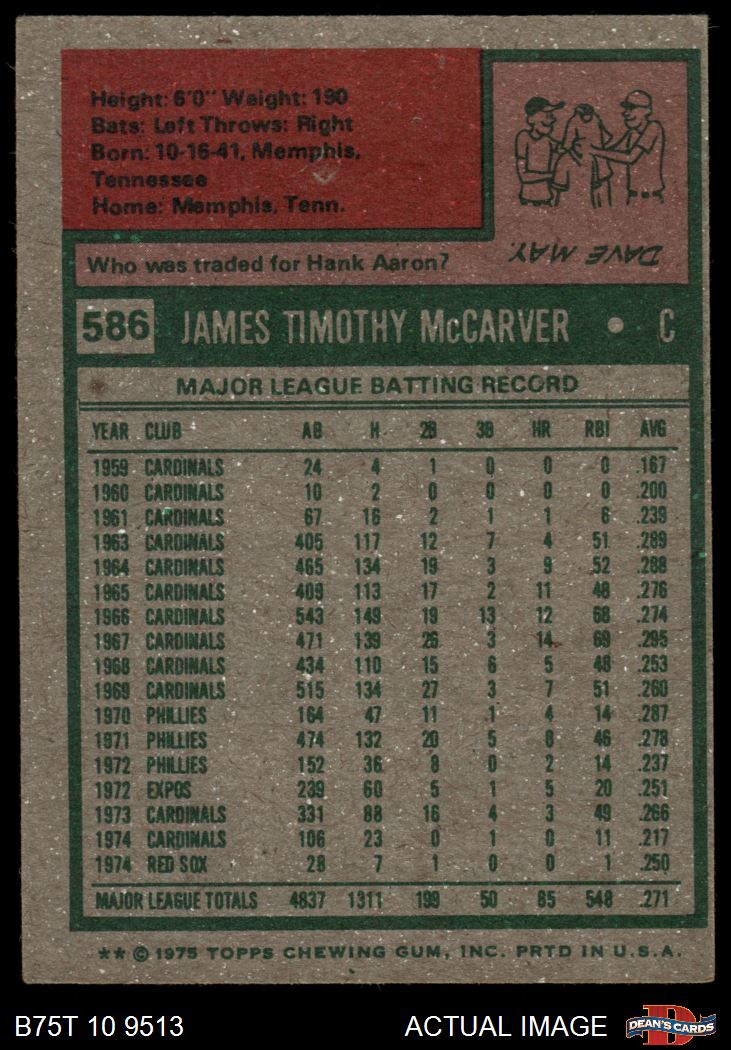 1975 Topps #586 Tim McCarver 4 - VG/EX