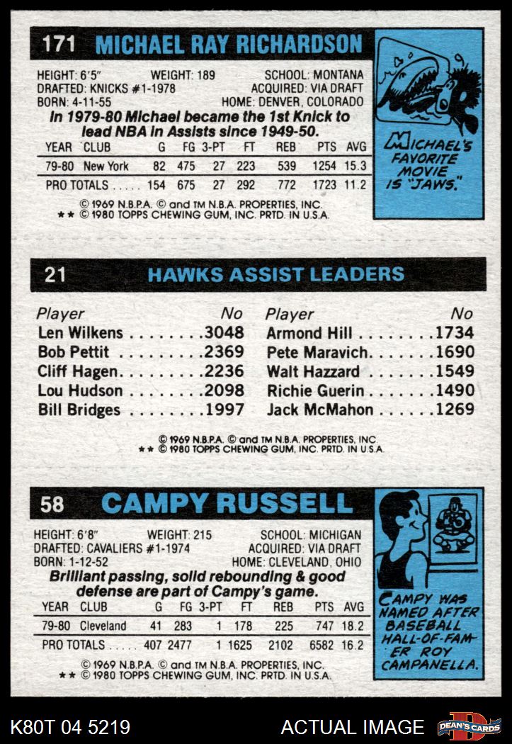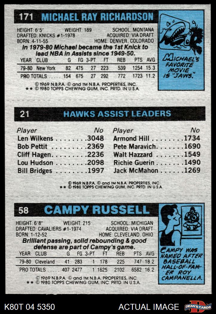1980 Topps - Campy Russell / Armond Hill / Michael Ray Richardson 58 / 21 / 171 8 - NM/MT