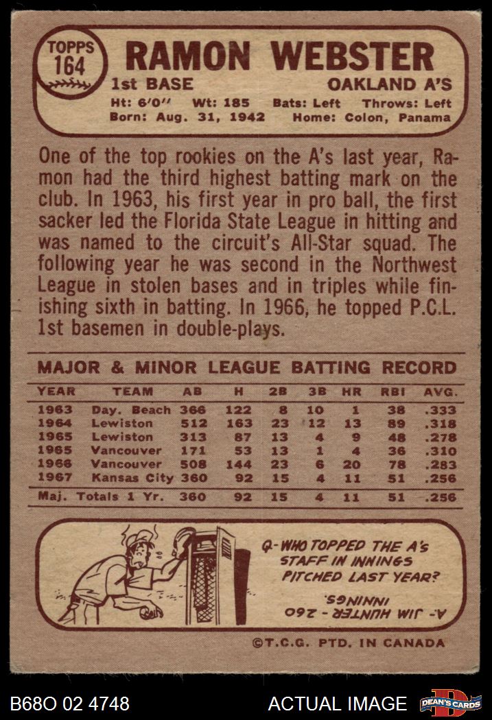 1968 O-Pee-Chee #164 Ramon Webster 4 - VG/EX