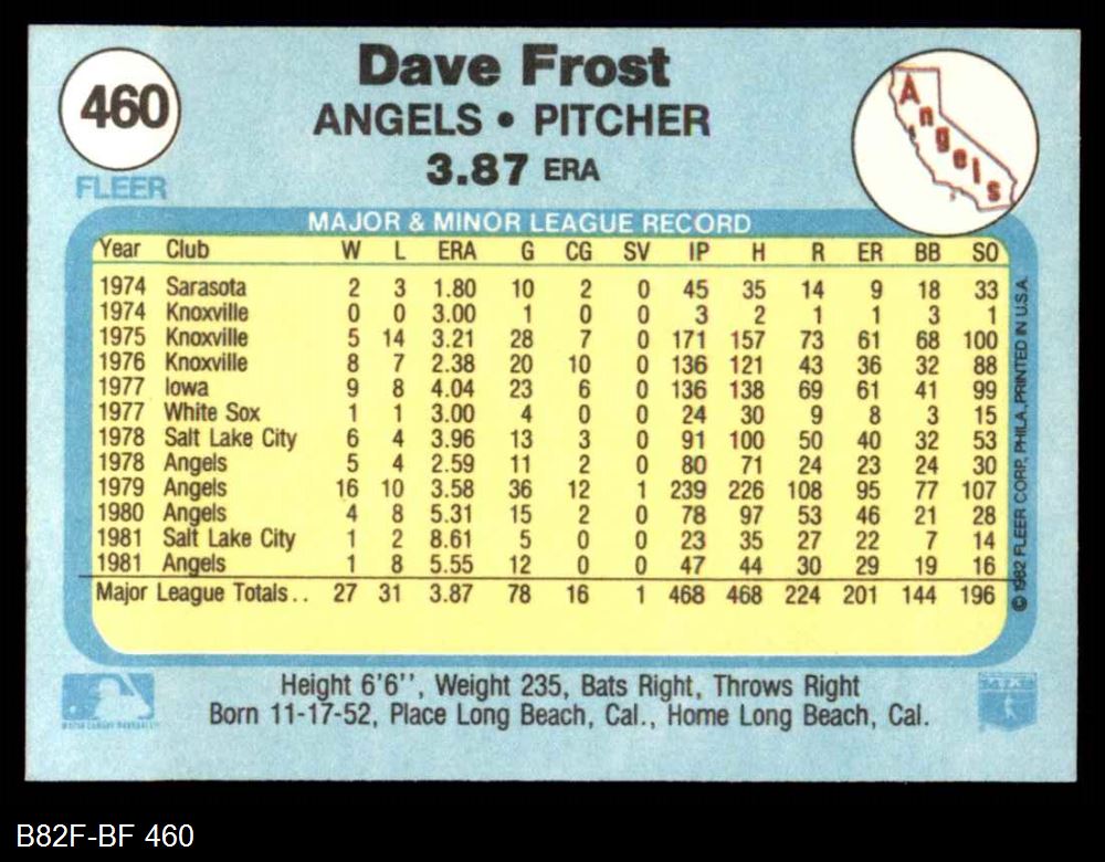 1982 Fleer #460 B Dave Frost 8 - NM/MT