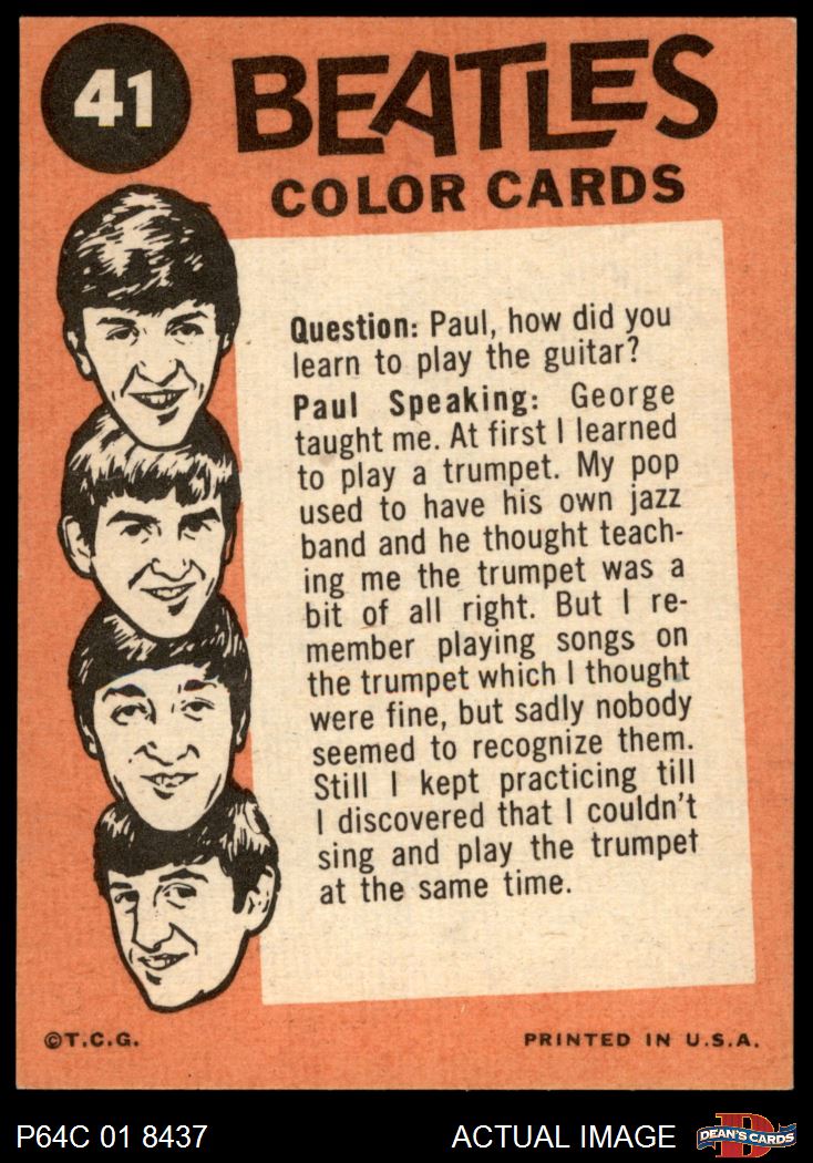 1964 Topps Beatles Color #41 Paul and John