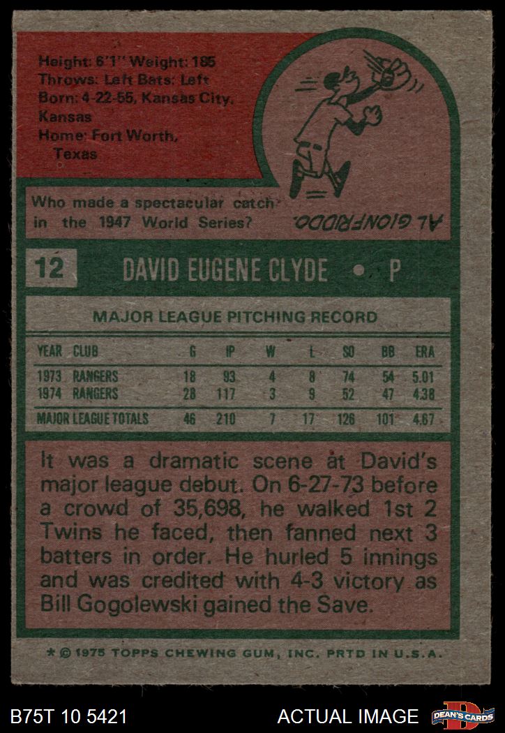 1975 Topps #12 David Clyde 7 - NM