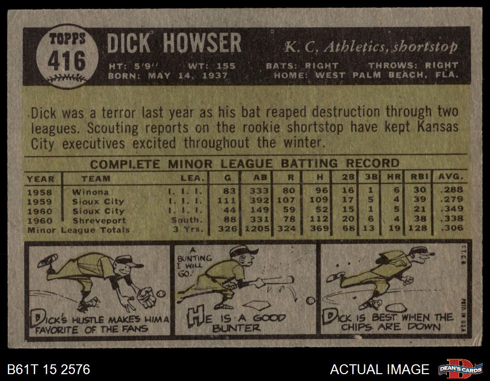 1961 Topps #416 Dick Howser 3 - VG