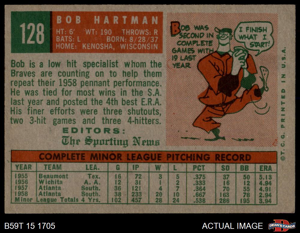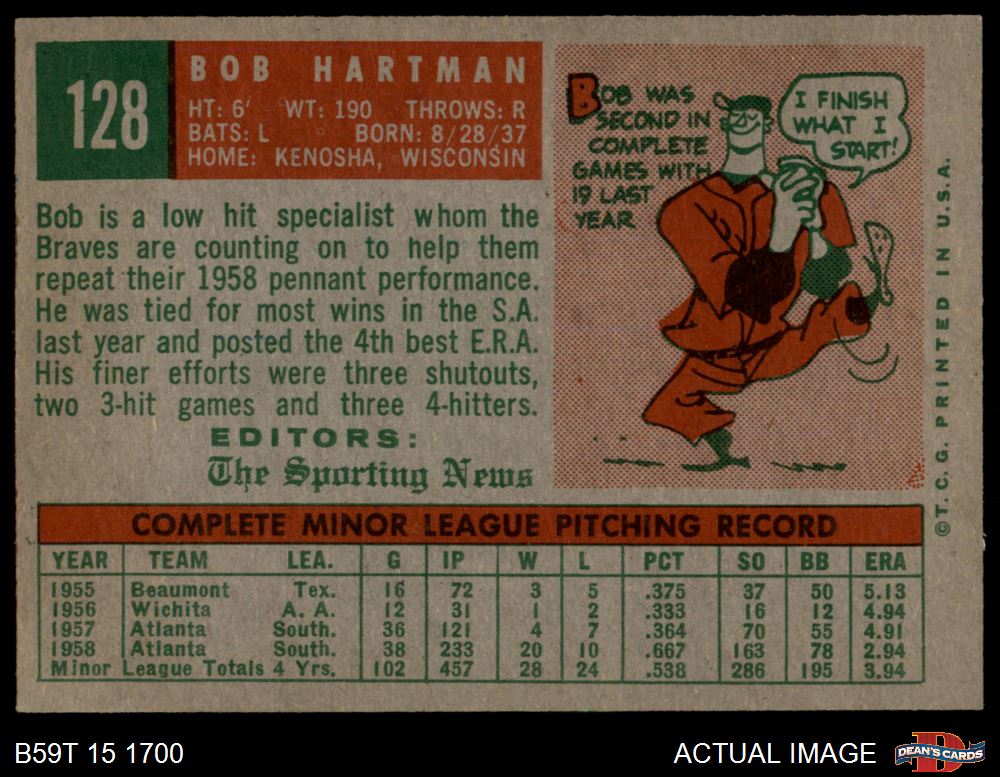 1959 Topps #128 Bob Hartman