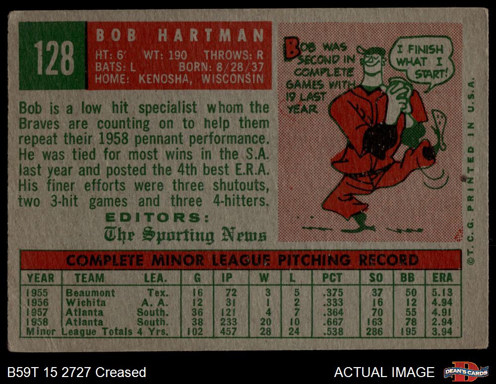 1959 Topps #128 Bob Hartman 2 - GOOD