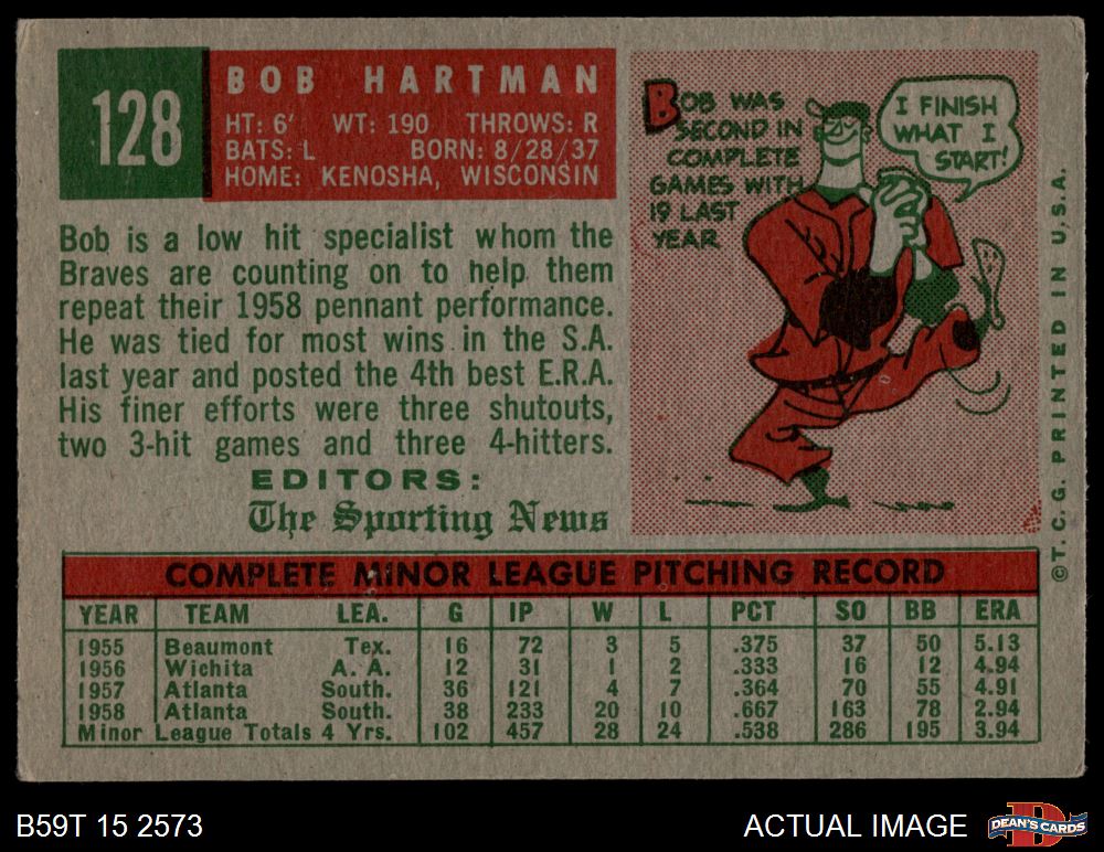 1959 Topps #128 Bob Hartman 4 - VG/EX
