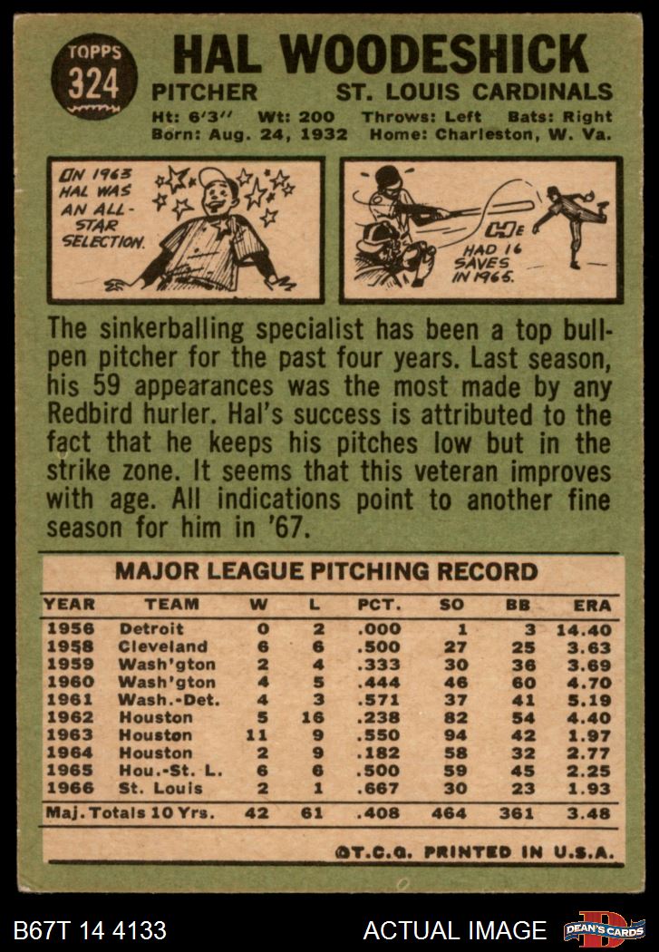 1967 Topps #324 Hal Woodeshick 3 - VG