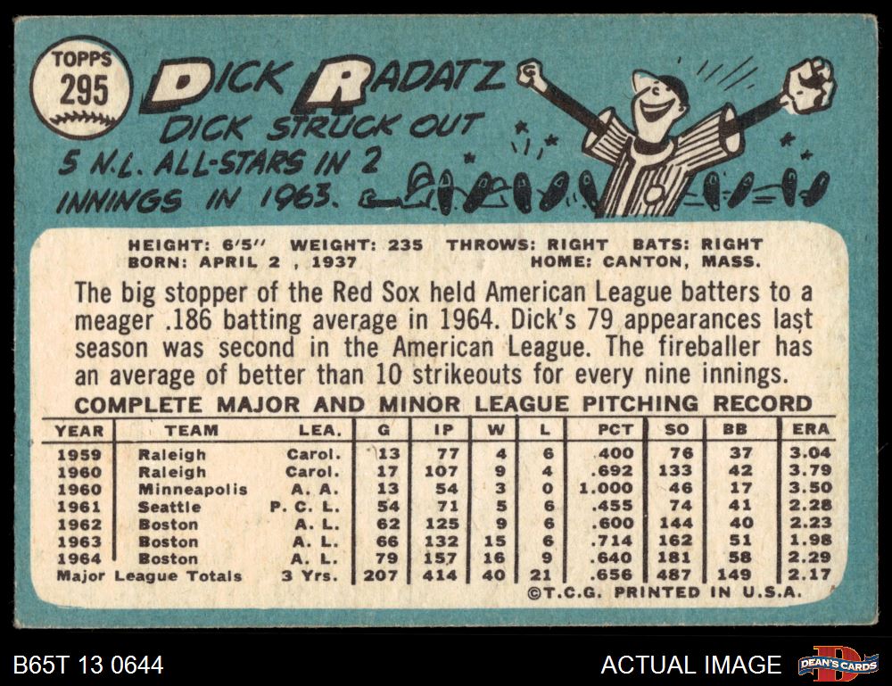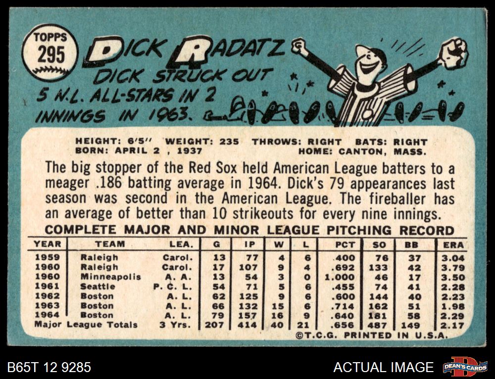 1965 Topps #295 Dick Radatz 2 - GOOD
