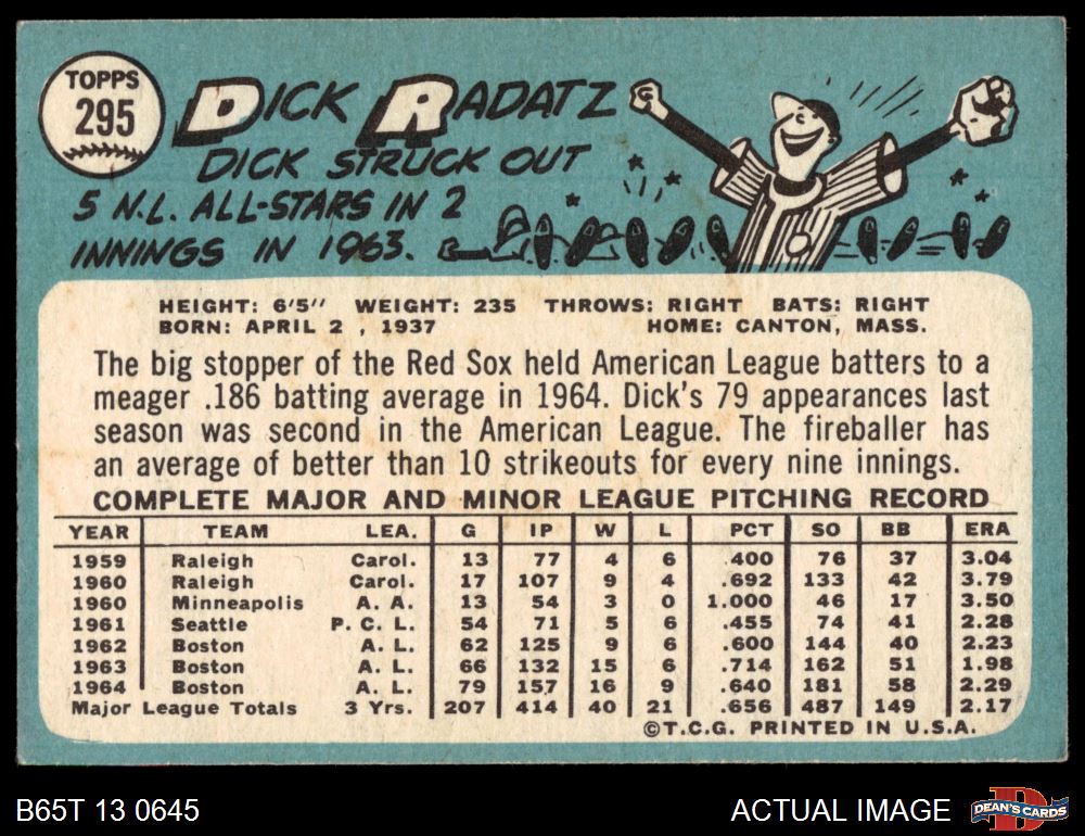 1965 Topps #295 Dick Radatz 4 - VG/EX