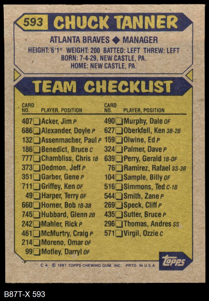 1987 Topps #593 Chuck Tanner