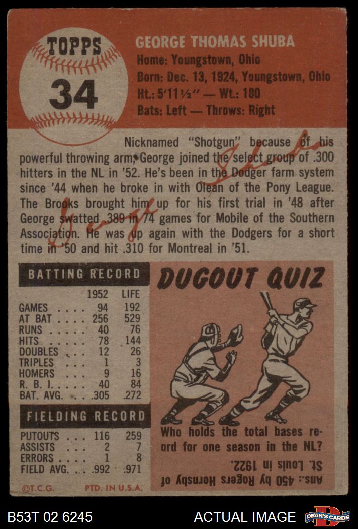 1953 Topps #34 George Shuba