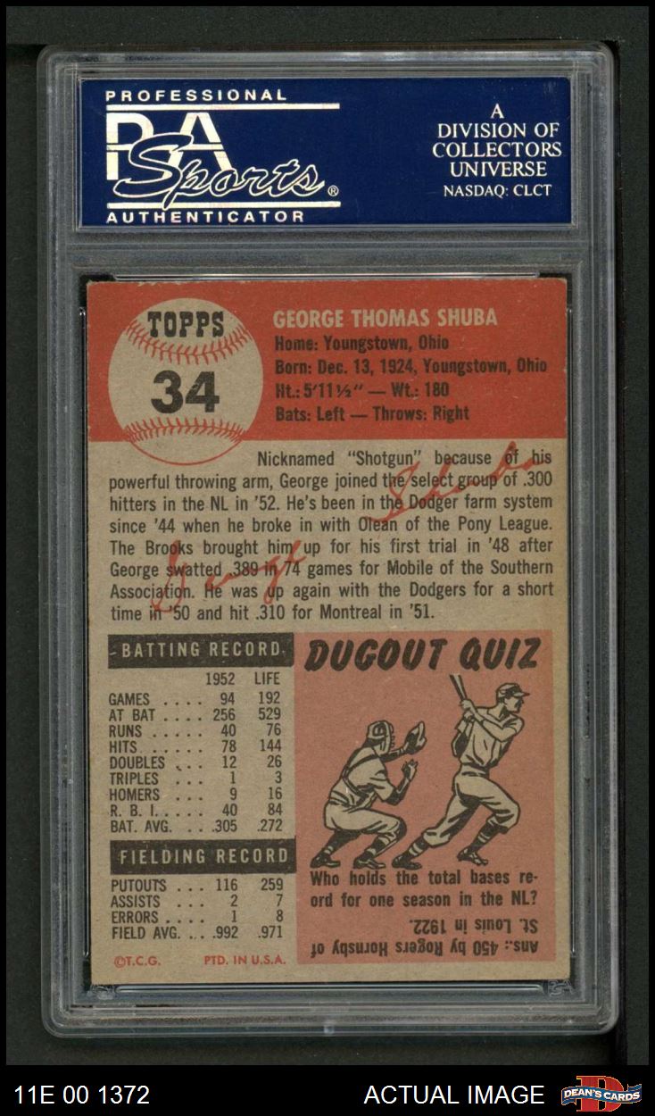1953 Topps #34 George Shuba PSA 5 - EX