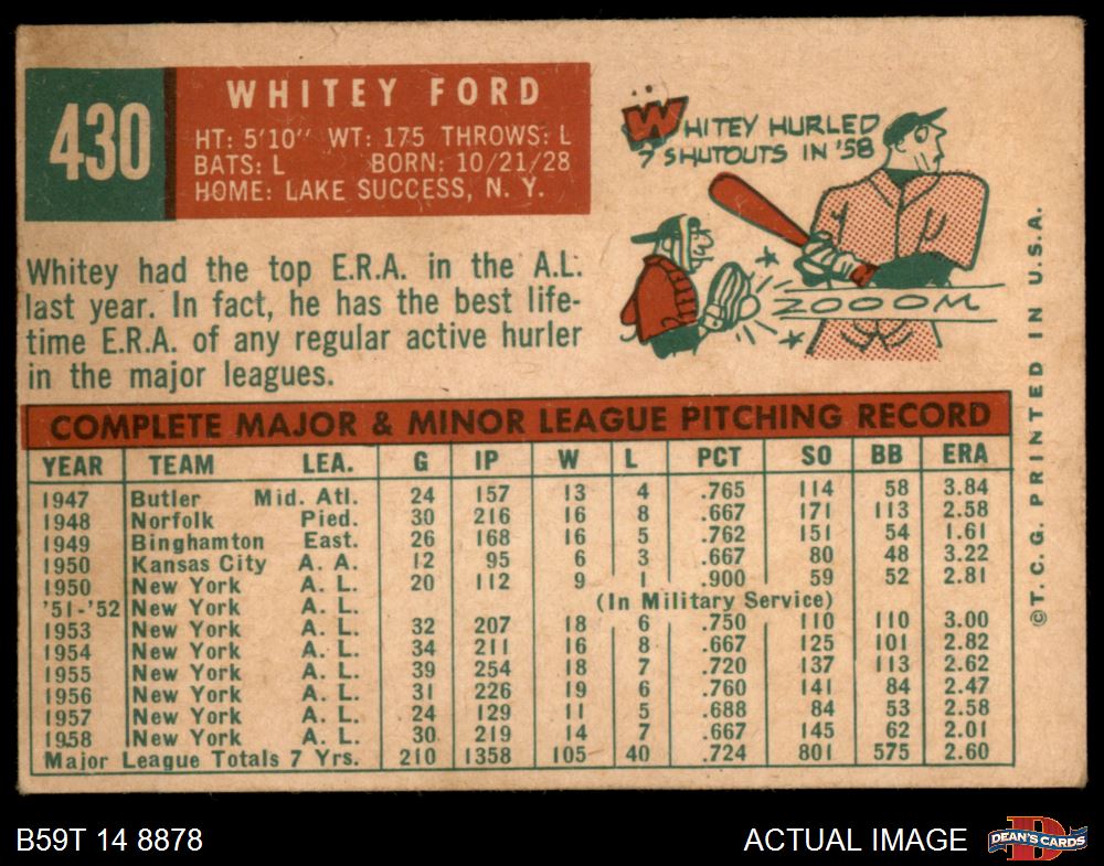 1959 Topps #430 Whitey Ford 2 - GOOD