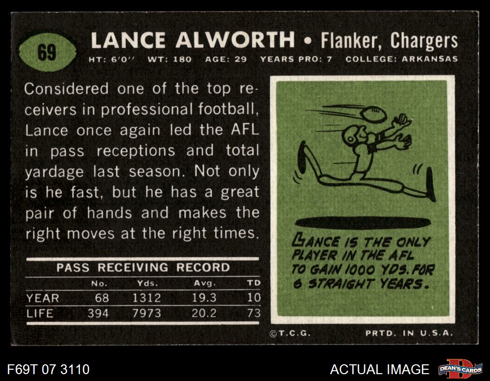 1969 Topps #69 Lance Alworth 6 - EX/MT