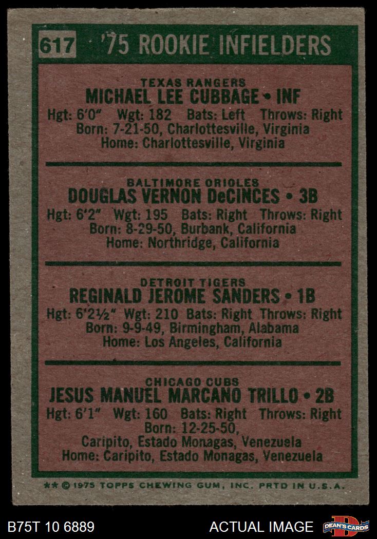 1975 1975 #617 - Doug DeCinces / Manny Trillo / Mike Cubbage / Reggie Sanders Rookie Infielders 3 - VG