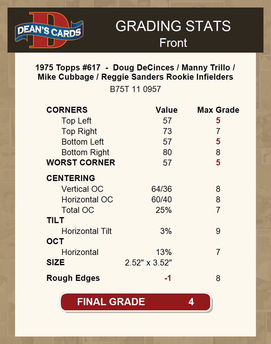 1975 Topps #617 - Doug DeCinces / Manny Trillo / Mike Cubbage / Reggie Sanders Rookie Infielders 4 - VG/EX