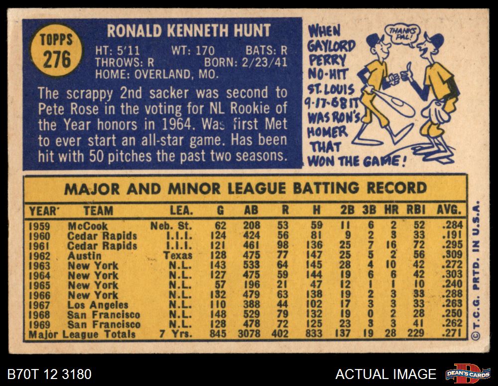 1970 Topps #276 Ron Hunt 4 - VG/EX