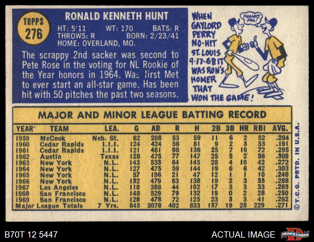 1970 Topps #276 Ron Hunt 6 - EX/MT