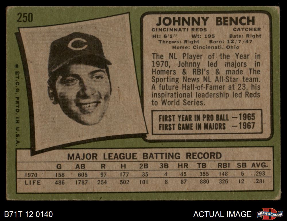1971 Topps #250 Johnny Bench 1.5 - FAIR
