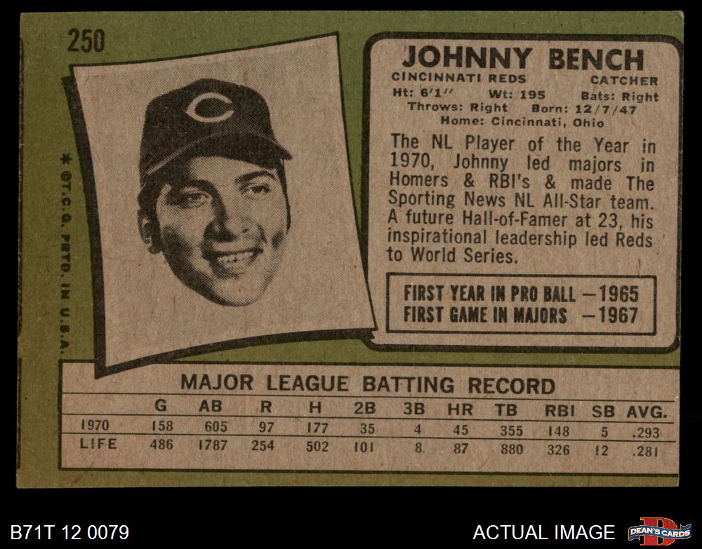 1971 Topps #250 Johnny Bench 2 - GOOD
