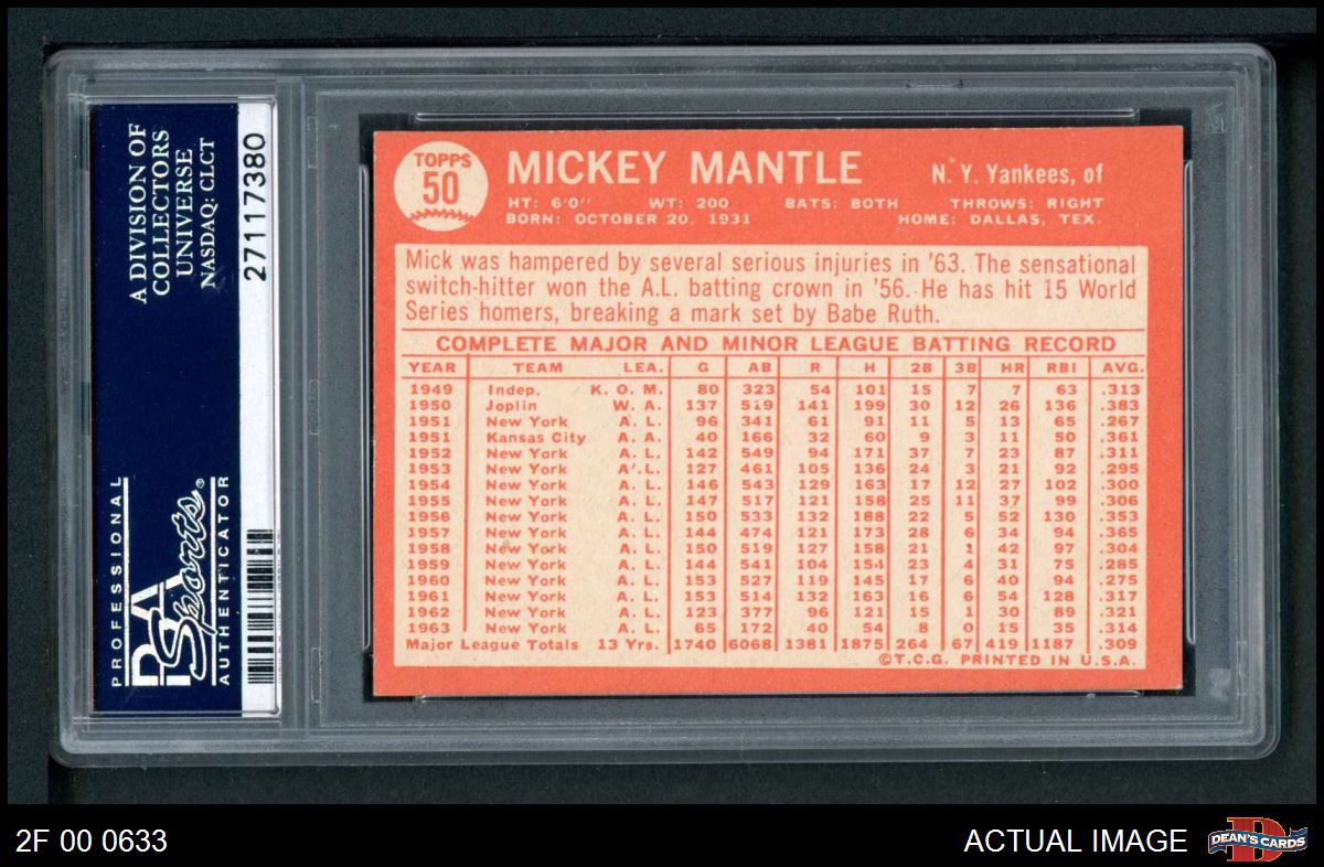 1964 Topps #50 Mickey Mantle PSA 7 - NM