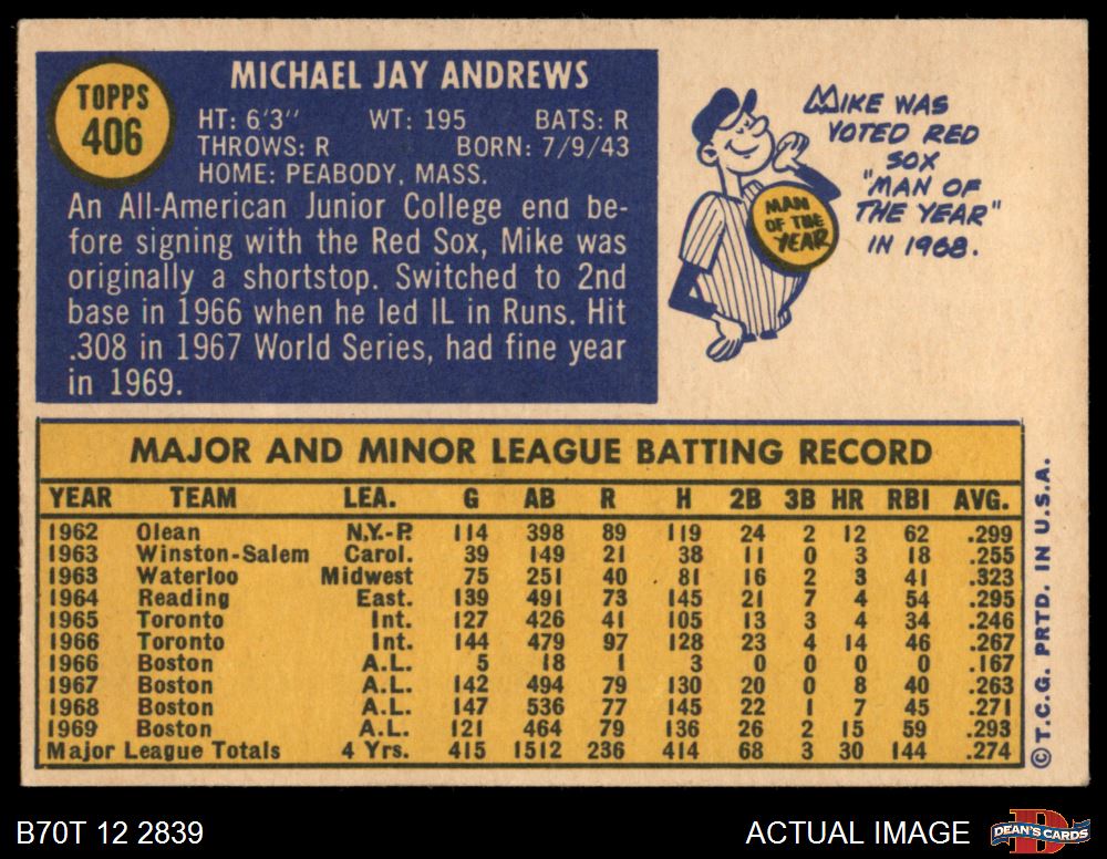 1970 Topps #406 Mike Andrews 6 - EX/MT
