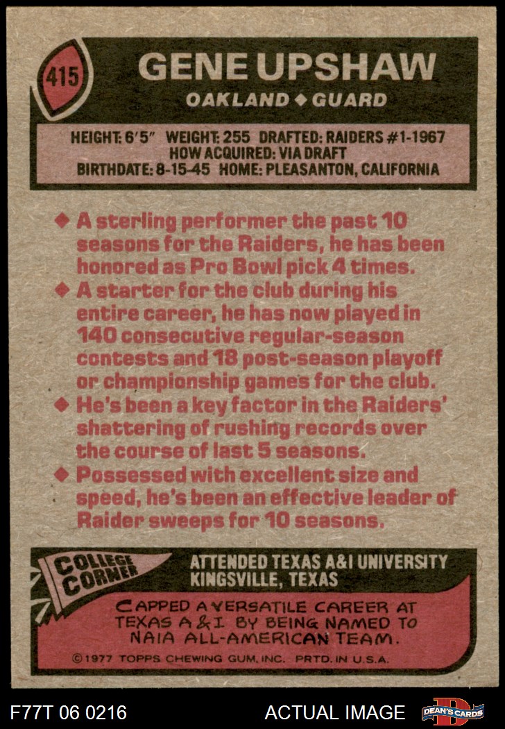 1977 Topps #415 Gene Upshaw